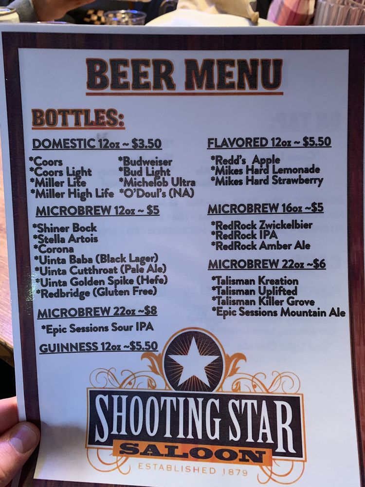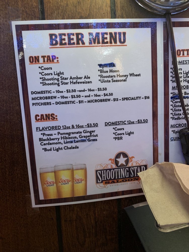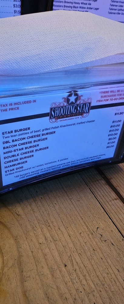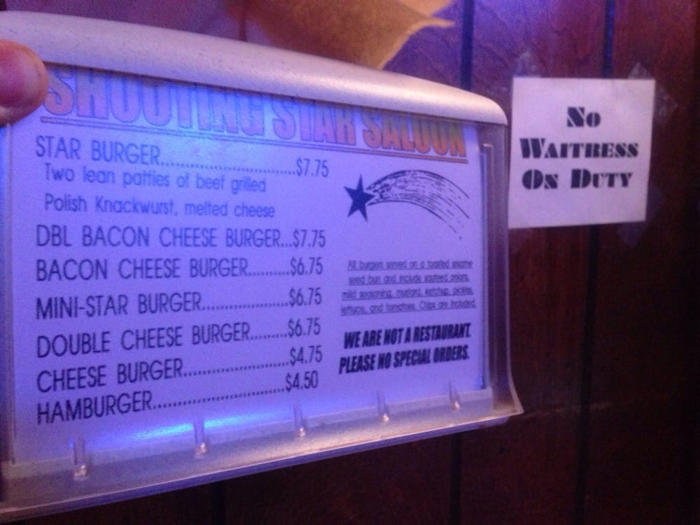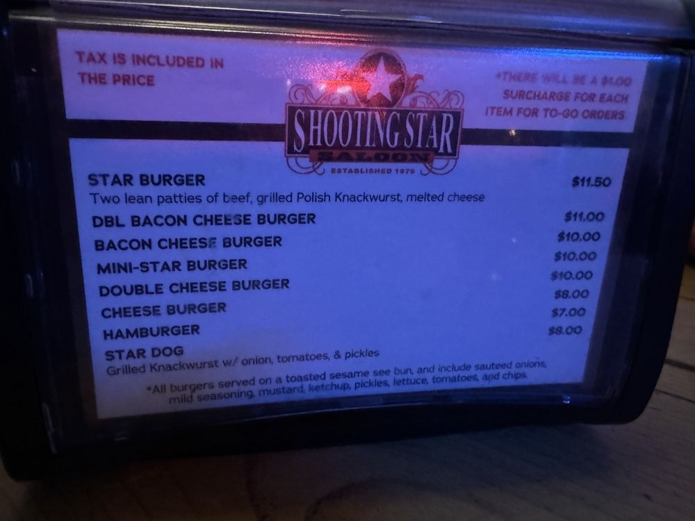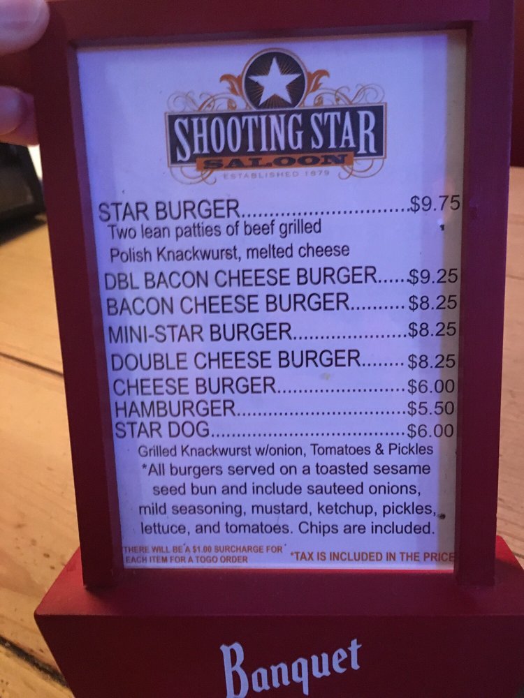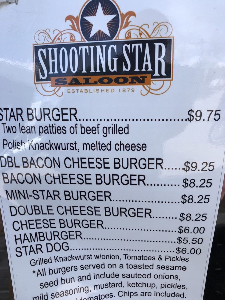 Shooting Star Saloon, located in Huntsville, UT, is a dive bar known for its delicious burgers and hot dogs. The menu is simple yet satisfying, with their signature Star Burger being a standout choice. This burger features two juicy patties, a Knackwurst sausage, grilled onions, and melted cheese, all sandwiched between a bun. Customers rave about the quality and taste of the food, as well as the friendly service provided by the all-female team. The historic vibe of the saloon adds to the charm, making it a must-visit destination for burger enthusiasts. With a cash-only policy and an old-school jukebox playing country music, Shooting Star Saloon offers a unique dining experience that is sure to leave you craving more. Don't miss out on this gem in Utah's culinary scene!